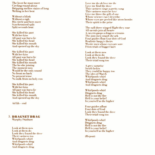Shipped in heavy-duty record mailers with inner and outer sleeves, with vinyl placed behind the jacket to prevent seam splits.