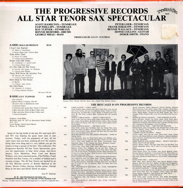 Scott Hamilton, Flip Phillips, Ray Turner, Peter Loeb, Frank Socolow, Bennie Wallace - The Progressive Records All Star Tenor Sax Spectacular
