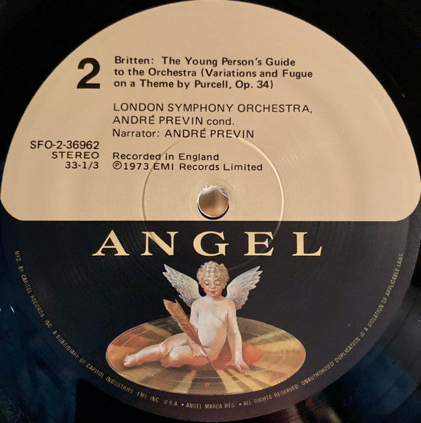 This album features a delightful collaboration between renowned conductor André Previn and the London Symphony Orchestra, presenting Prokofiev's charming "Peter and the Wolf" alongside Britten's engaging "The Young Person's Guide to the Orchestra," both of which aim to introduce classical music to younger audiences through narrative and orchestral color.
