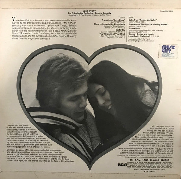 The Philadelphia Orchestra's "Love Story" features lush orchestral arrangements of romantic themes, highlighting the ensemble's rich sound and emotional depth in classical music interpretations.