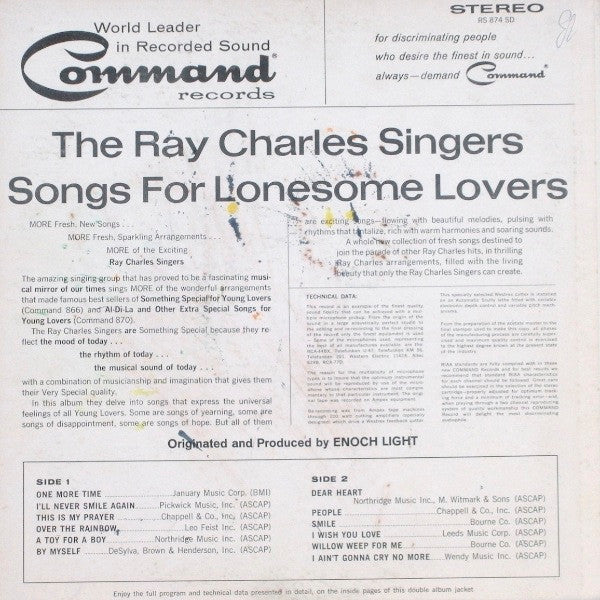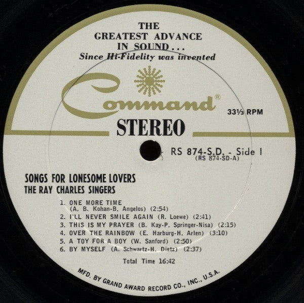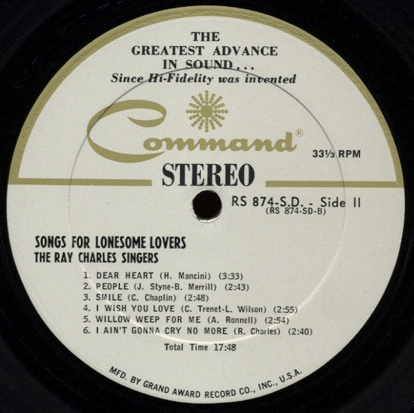 "Songs For Lonesome Lovers" features the smooth vocal harmonies of The Ray Charles Singers, blending elements of traditional pop and easy listening, and is notable for its lush orchestral arrangements that evoke a deep sense of longing and nostalgia.