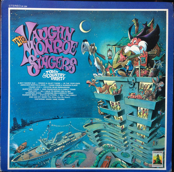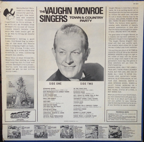 The Vaughn Monroe Singers' album "Town & Country Party" features a blend of traditional country and pop influences, highlighting the group's harmonious vocal arrangements and Monroe's charismatic leadership in the post-war American music scene.