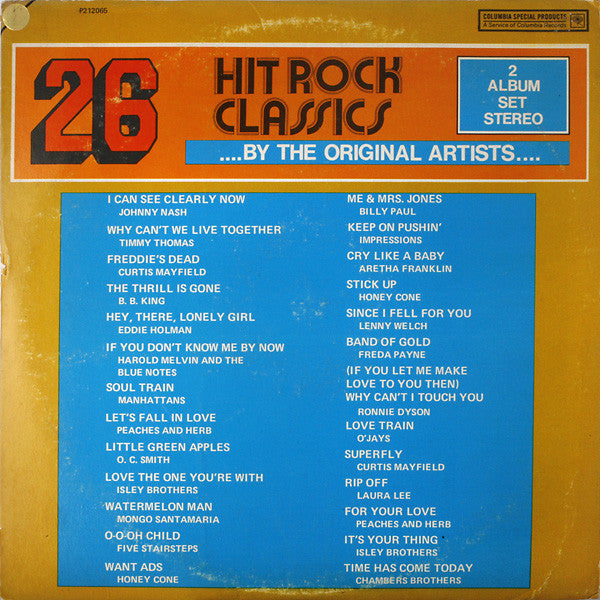"26 Hit Rock Classics" features a diverse collection of iconic rock anthems from various artists, highlighting the genre's evolution and its impact on popular music culture.