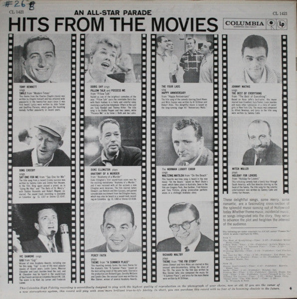 "An All-star Parade Hits From The Movies" features a collection of iconic film songs performed by a diverse lineup of celebrated artists, highlighting the enduring impact of cinematic music on popular culture.