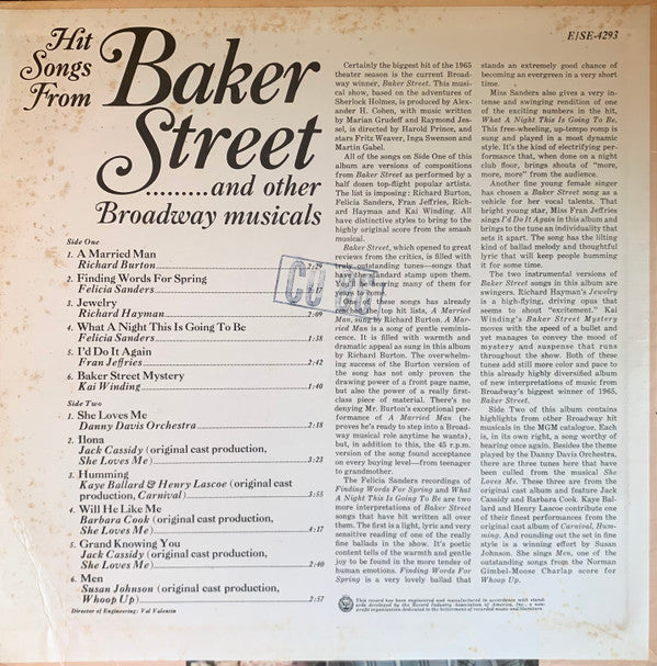 Various - Hit Songs From Baker Street.......and other Broadway Musicals