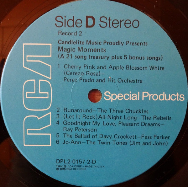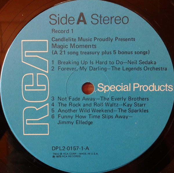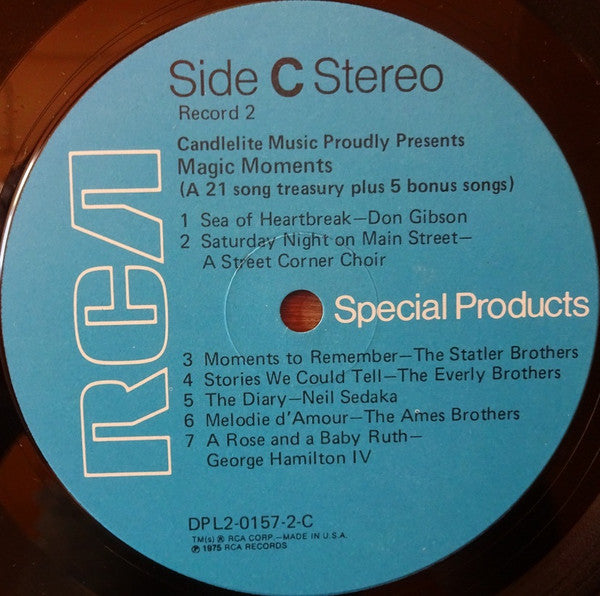 "Magic Moments" is a compilation album featuring a diverse array of classic pop and easy listening tracks, highlighting the timeless appeal of nostalgic melodies and heartfelt lyrics.
