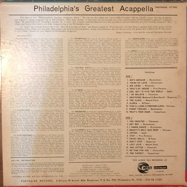 "Philadelphia's Greatest Acappella" features a vibrant collection of vocal harmonies that highlight the rich tradition of acappella music in Philadelphia, showcasing the city's diverse musical heritage and talent.