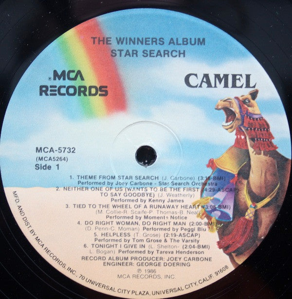 "Star Search The Winners Album" features a collection of performances from contestants of the popular talent show, highlighting a diverse range of musical styles and showcasing the early careers of several artists who would go on to achieve greater fame.
