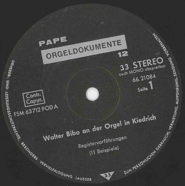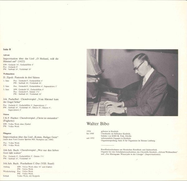 "Walter Bibo - Registervorführungen Und Werke Alter Meister" features a unique blend of organ works and historical performances, highlighting the intricate craftsmanship of both the instrument and the compositions of old masters.