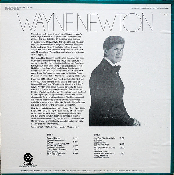 "Danke Schoen" features Wayne Newton's signature blend of pop and traditional show tunes, with the title track becoming a cultural touchstone after its use in various films and television shows, notably in a memorable scene from "Ferris Bueller's Day Off."